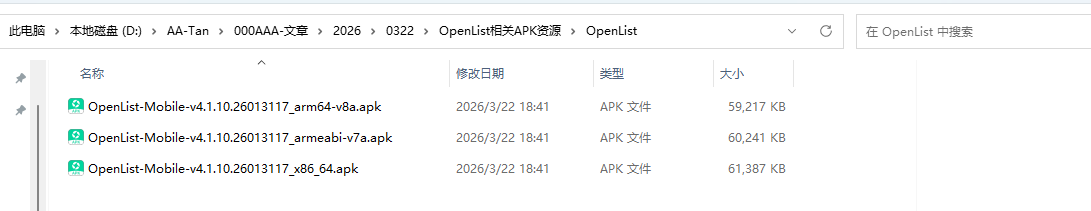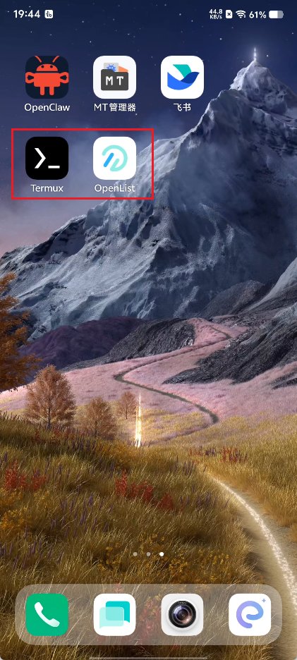 首先,将云盘中的OpenList和termux软件安装在手机上: