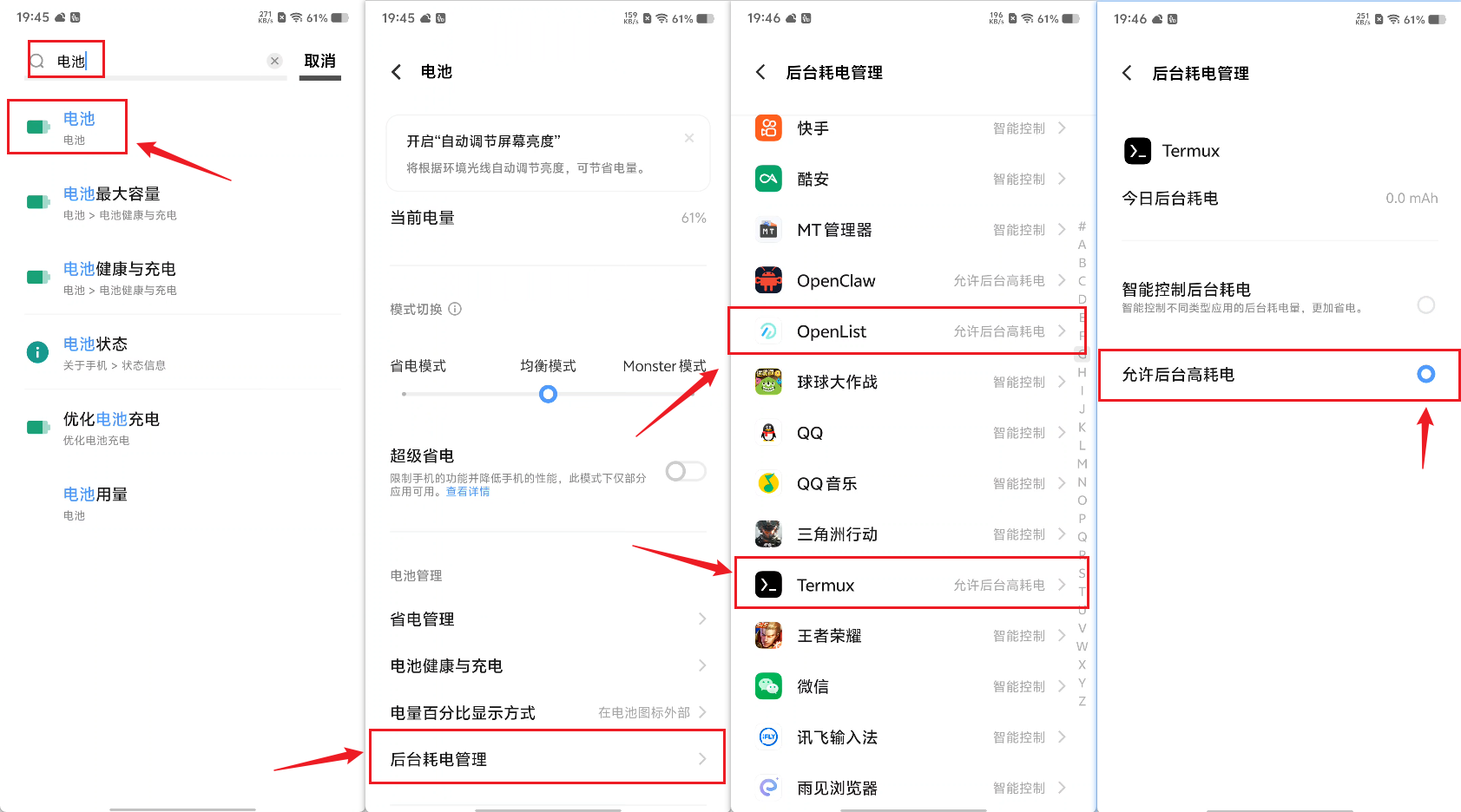 这样,即可保证OpenList和Termux应用后台无限制运行啦!