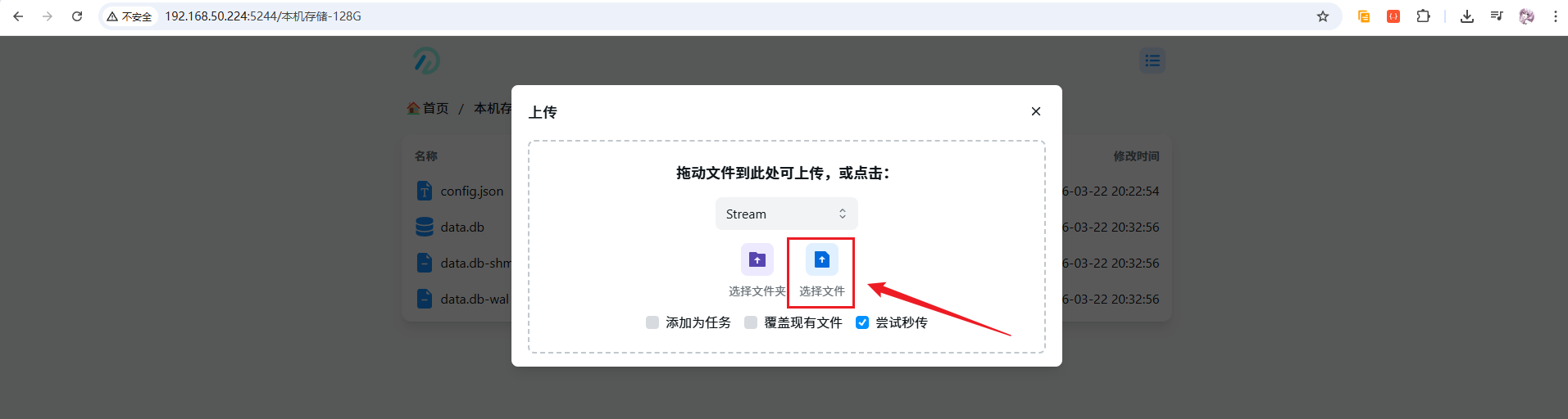 找到你要上传的文件,点击确定即可上传,局域网传输基本是秒传: