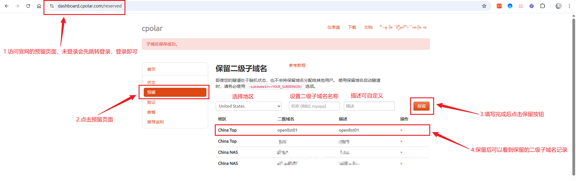 为了解决这个问题,cpolar 提供了固定二级子域名功能。只需升级到任意付费套餐,就可以配置一个固定不变、简短易记的专属域名,彻底告别域名频繁变化的烦恼。下面我们来看看如何配置固定二级子域名。