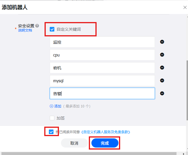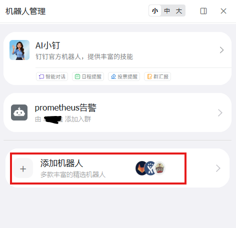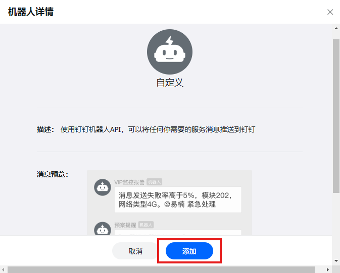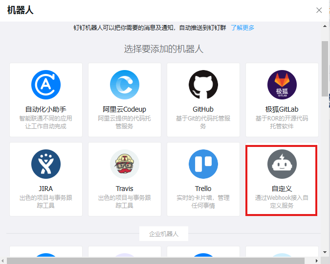 添加自定义机器人:
