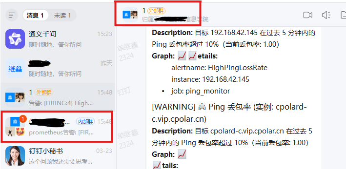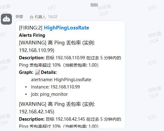等响应一会就可以在两个群聊中都看见告警啦!