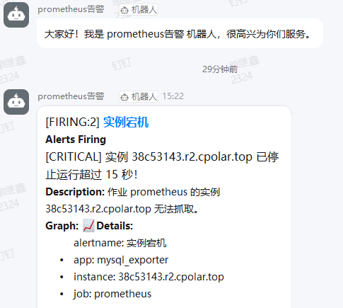 钉钉作为国内企业广泛使用的即时通讯工具,几乎全员在线、消息必达。将告警直接推送至运维群或值班群,能确保问题在第一时间被看到,大幅缩短MTTR,避免小故障演变为大事故。