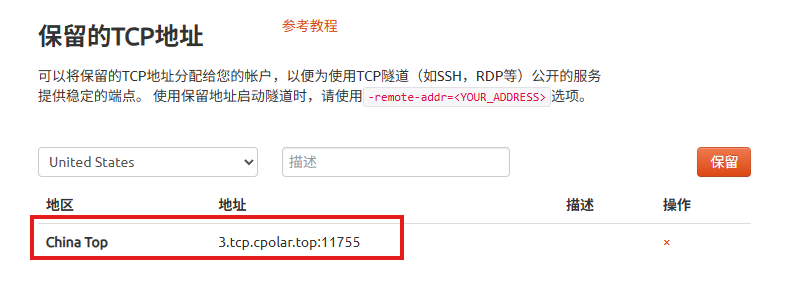 创建完成后,打开在线隧道列表,此时可以看到随机的公网地址已经发生变化,地址名称也变成了保留和固定的TCP地址。