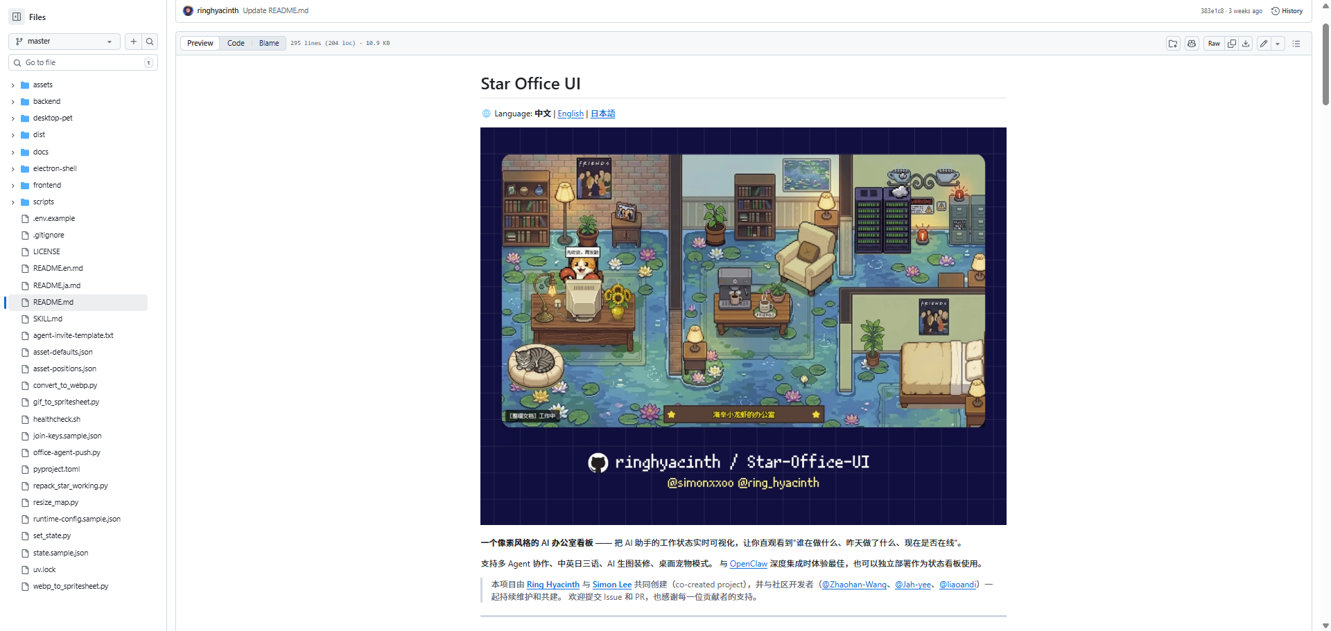 Star Office UI 是一个开源的像素风格 AI 办公室看板项目,GitHub 地址如下: