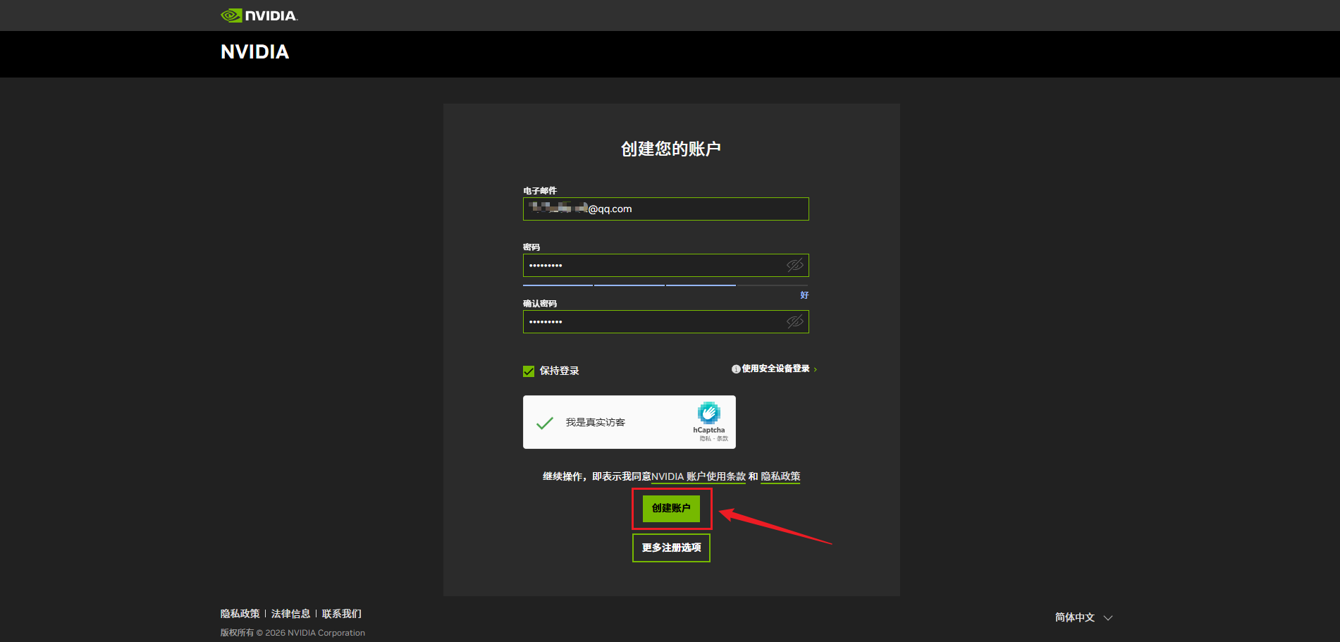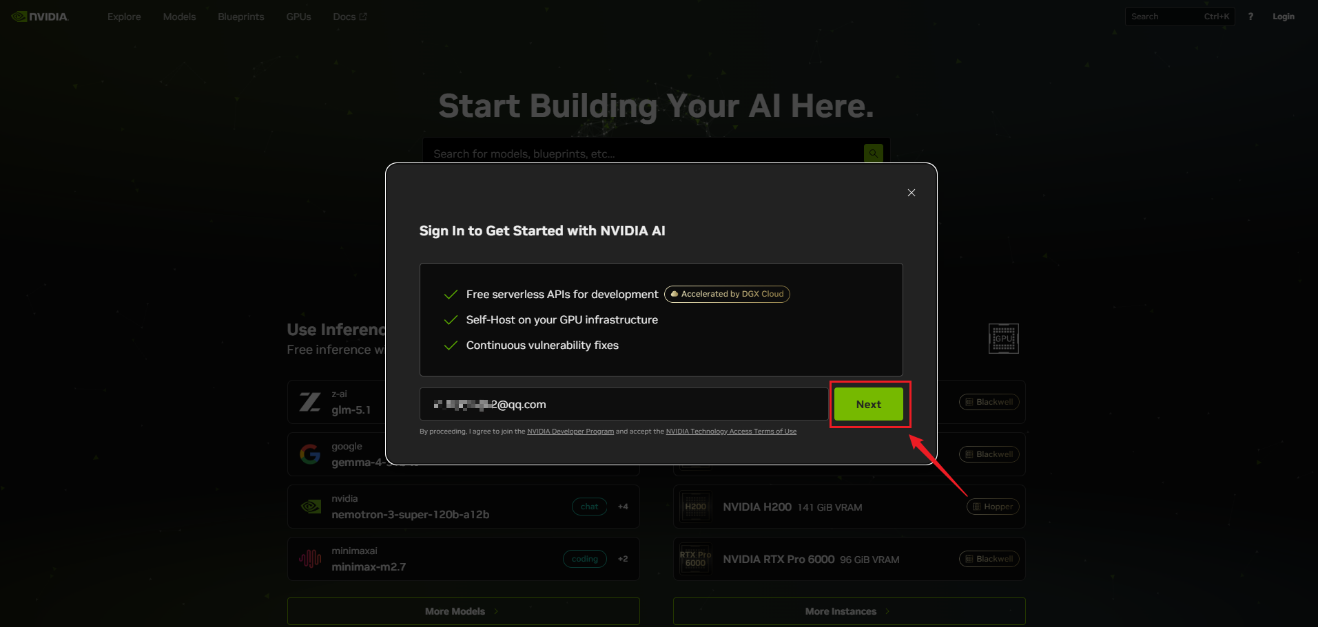 如果你已经有 NVIDIA 账号,直接登录即可;如果还没有,就输入自己的邮箱地址,按页面提示继续注册: