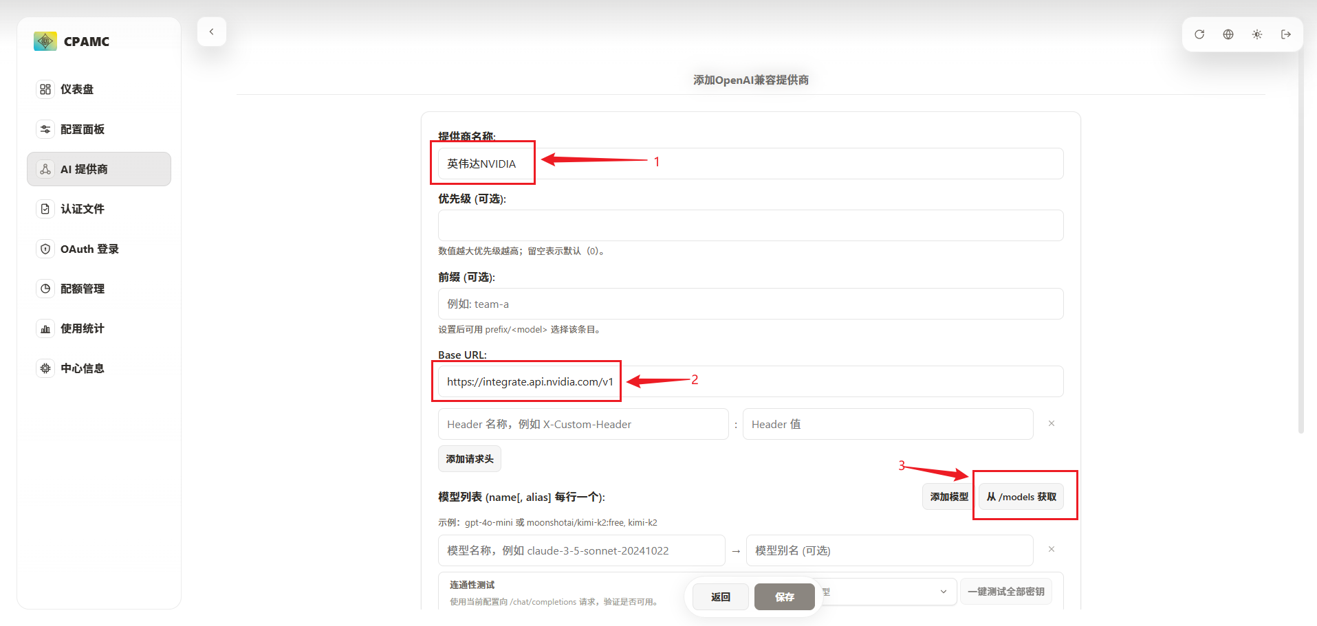 拿到 Key 之后,就可以继续下一步,把 NVIDIA 作为上游接入到 CLI Proxy API 中了。