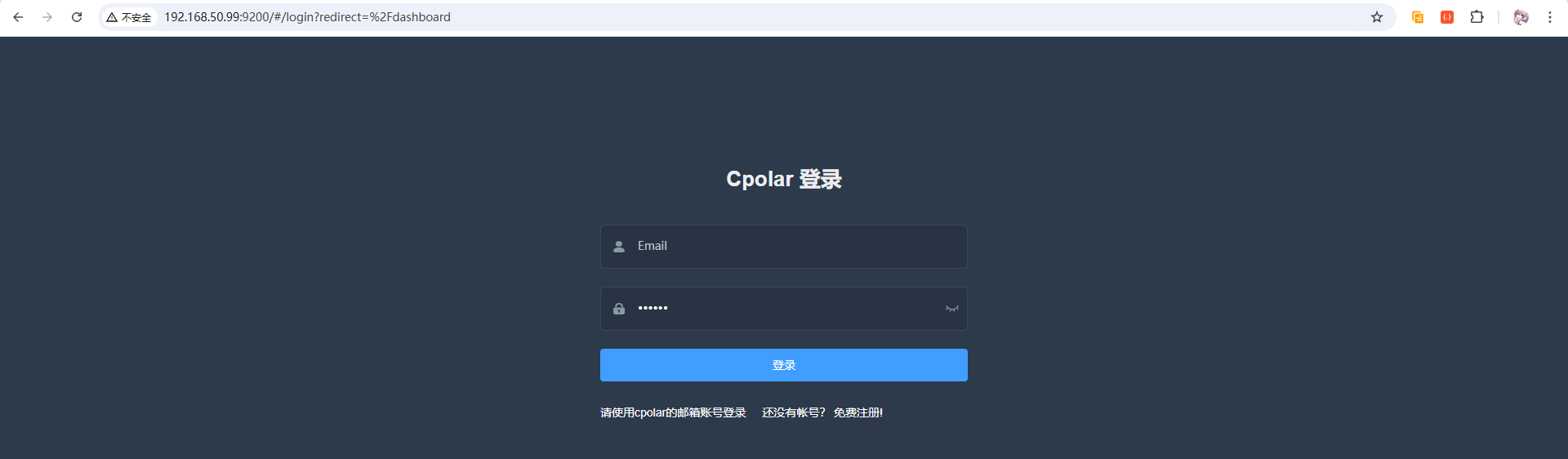 可以看到页面能够正常打开,就说明 cpolar 已经安装完成,并且 Web UI 也可以正常访问。 如果你还没有注册 cpolar 账号,也可以直接在页面底部点击入口跳转注册。