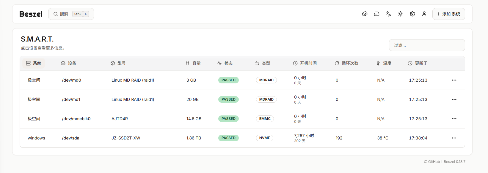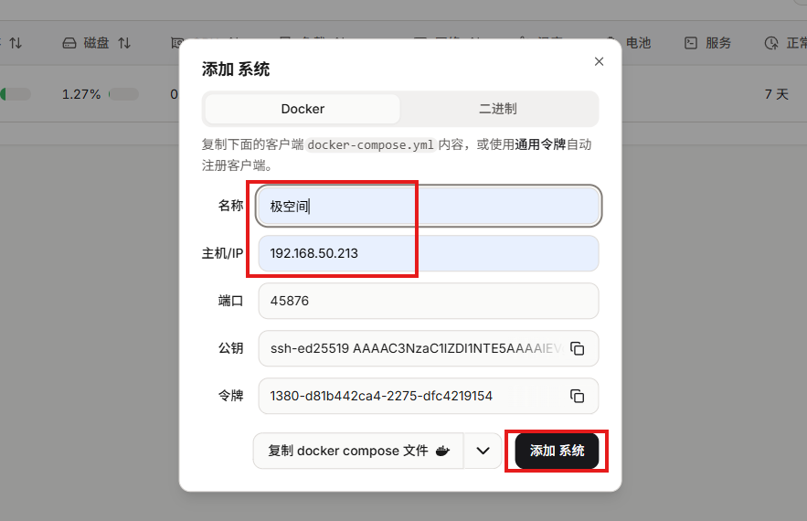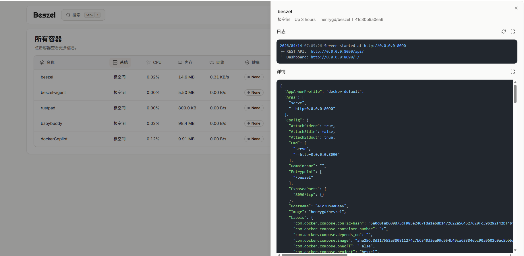 部署完成后,在浏览器中输入 http://极空间IP:8091 就能看到beszel的界面: