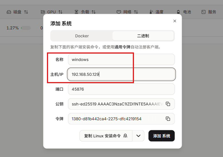 添加执行命令的主机ip,然后点击”添加系统”: