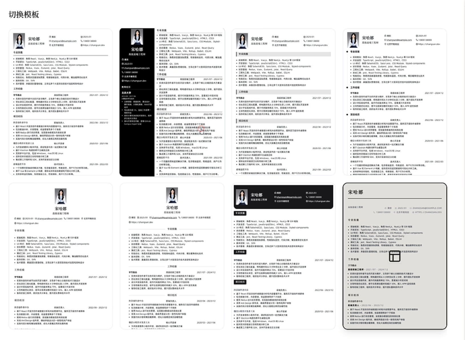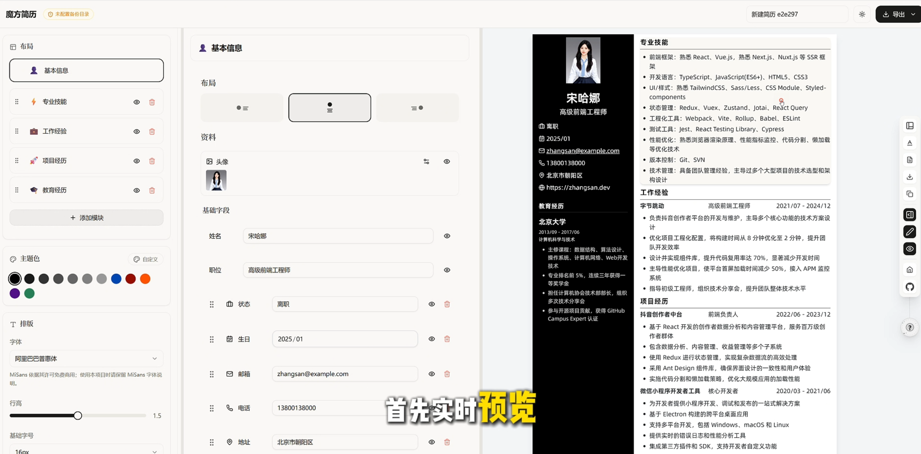 可以直接点击各个部分进行编辑。左侧是编辑区域,右侧是实时预览窗口,所有修改都会立即反映在预览中。