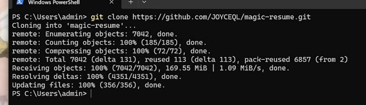 git clone https://github.com/JOYCEQL/magic-resume.git