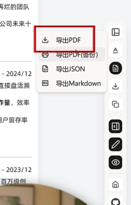• 一键导出PDF:改完,点一下,‘啪’,一个完美的PDF简历就躺在你的下载文件夹里了!
