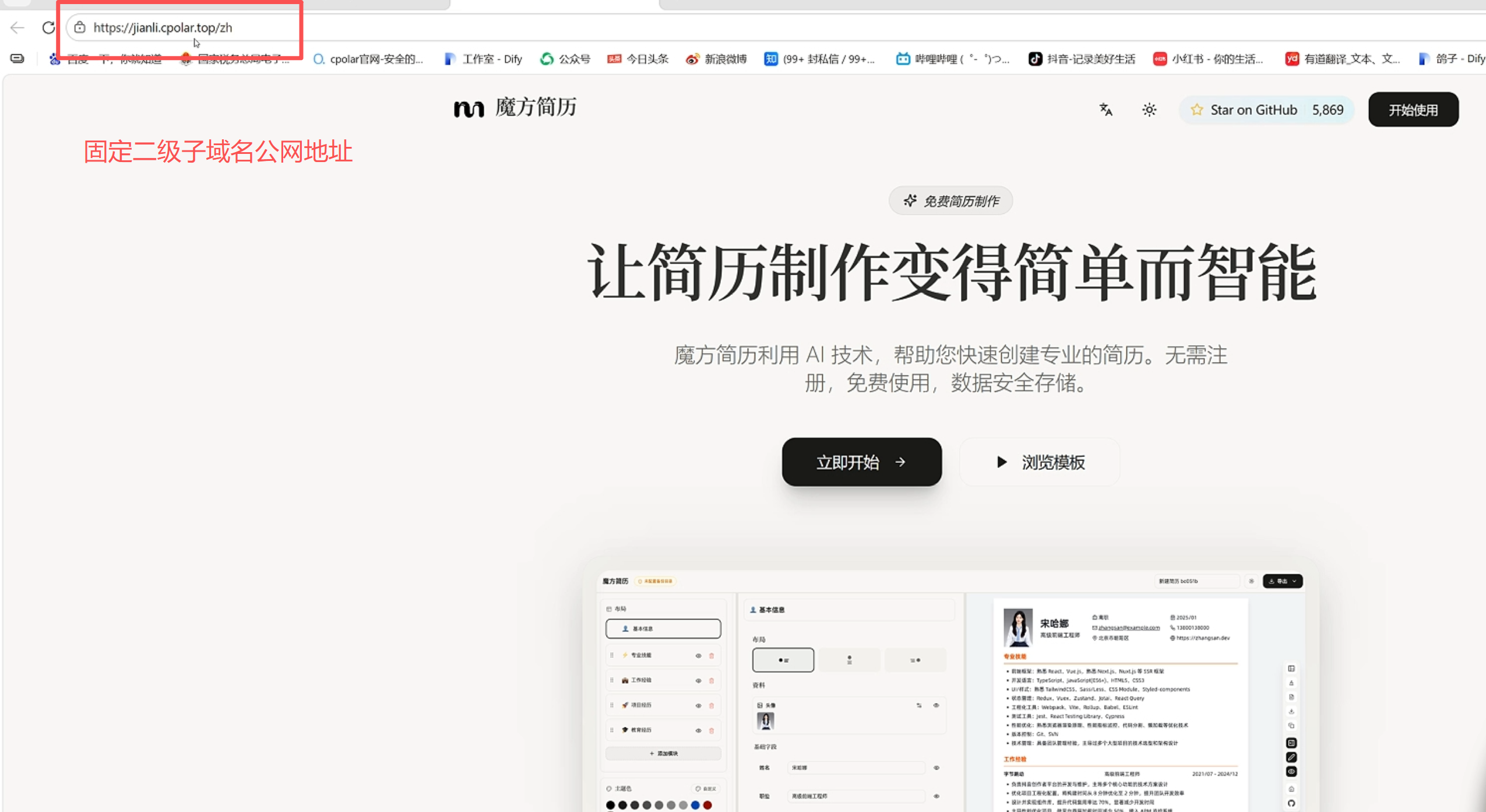 Cpolar 是一款强大的内网穿透工具,它可以让你的本地服务通过公网访问。简单来说,就是给你的内网设备搭了一座“跨海大桥”,让你无论在哪里都能访问到家里的魔方简历编辑器。