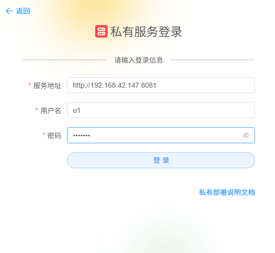 点击私有服务,点击登录: