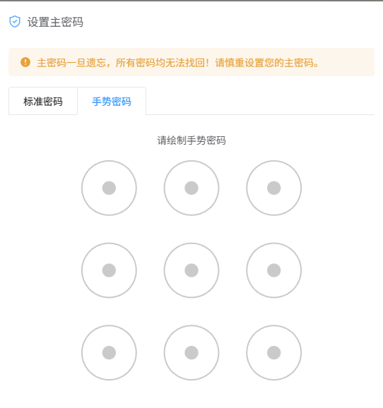 设置一个主密码,可以选择标准密码和手势密码。
