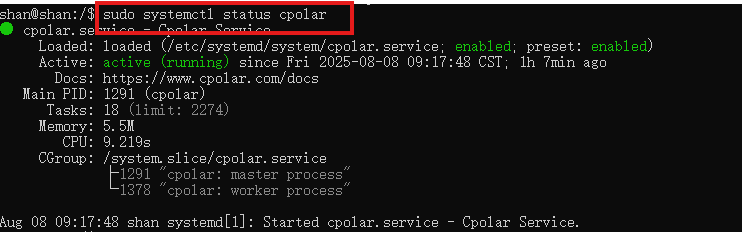 sudo systemctl status cpolar