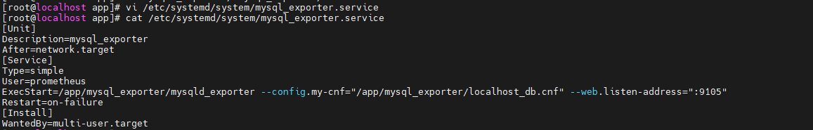 ExecStart=/app/mysqld_exporter/mysqld_exporter --config.my-cnf="/app/mysqld_exporter/localhost_db.cnf" --web.listen-address=":9105"